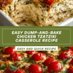 This Amazing Dump-and-Bake Chicken Tzatziki Casserole is a simple and flavorful one-dish meal perfect for busy weeknights. Combining tender shredded chicken, refreshing tzatziki, and wholesome quinoa or rice, it’s both comforting and delicious.