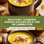 This Anti-Inflammatory Turmeric and Ginger Golden Milk recipe is a soothing, creamy beverage packed with natural anti-inflammatory ingredients like turmeric, ginger, cinnamon, and black pepper. Traditionally used in Ayurvedic medicine, this warm drink helps reduce muscle soreness, ease joint pain, boost digestion, and promote better sleep. Made with your choice of milk and optionally sweetened with honey or maple syrup, it’s a comforting and health-supporting elixir perfect for winding down or recovering after a workout.