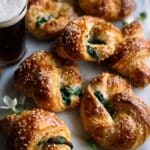 These Artichoke Dip Stuffed Pretzels combine the savory flavors of creamy artichoke dip with melted mozzarella, all wrapped in soft, golden baked pretzel dough. Perfect as a flavorful appetizer or snack, these pretzels feature a delightful blend of spinach, parmesan, garlic, and a touch of heat from red pepper flakes, encased in a crispy, freshly baked crust.