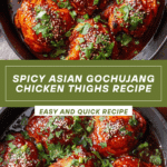 Asian Gochujang Chicken Thighs are a spicy and flavorful Korean-inspired dish featuring boneless, skinless chicken thighs marinated in a rich blend of gochujang, soy sauce, honey, sesame oil, and aromatics. The chicken is either baked or grilled to juicy perfection, then garnished with sesame seeds and chopped green onions. Perfect for serving with steamed rice and vegetables, this recipe offers a delicious way to enjoy bold, spicy flavors at home.