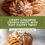 These Bakery-Style Cinnamon Crunch Knots combine a crisp, flaky exterior with a soft, buttery, cinnamon-spiced interior. Using store-bought puff pastry, this recipe is both quick and impressive, filling your kitchen with irresistible aromas.