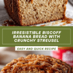 This Biscoff Banana Bread is a deliciously moist and flavorful loaf combining the natural sweetness of ripe bananas with the unique spiced caramel flavors of Biscoff cookies and cookie butter. Topped with a crunchy Biscoff streusel, this banana bread offers contrasting textures and decadent taste perfect for breakfast, snack, or dessert.