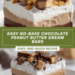 These Blissful Chocolate Peanut Butter Dream Bars combine a crunchy graham cracker crust with a creamy peanut butter layer and a rich chocolate ganache topping. They’re easy to make and perfect for satisfying any sweet tooth with a perfect balance of flavors.