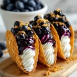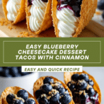 These Blueberry Cheesecake Dessert Tacos combine a crispy cinnamon-sugar shell with a creamy cheesecake filling and fresh blueberry topping. They’re a fun and delicious twist on classic flavors, perfect for a quick dessert that impresses.