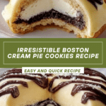 These Boston Cream Pie Cookies capture the classic dessert’s beloved flavors in a bite-sized treat. With a tender cookie base, creamy vanilla custard filling, and a rich chocolate glaze, they’re perfect for impressing guests or enjoying as a special homemade indulgence.