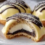 These Boston Cream Pie Cookies capture the classic dessert’s beloved flavors in a bite-sized treat. With a tender cookie base, creamy vanilla custard filling, and a rich chocolate glaze, they’re perfect for impressing guests or enjoying as a special homemade indulgence.