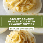 Delightful Boursin Deviled Eggs combine creamy Boursin cheese with Greek yogurt and a hint of sea salt, topped with crunchy crushed crackers. Perfect as an elegant appetizer or party snack, these deviled eggs offer a rich, herb-infused twist on a classic favorite.