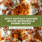 Delicious and savory Buffalo Chicken Bacon Mozzarella Bombs featuring a spicy buffalo chicken and cream cheese filling wrapped in flaky crescent roll dough, baked to golden perfection. Perfect as a party appetizer or a hearty snack with a kick of heat balanced by creamy cheese and crispy bacon.