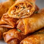 Crispy and flavorful Buffalo Chicken Egg Rolls that combine tender shredded chicken tossed in spicy buffalo sauce with melty cheese and fresh green onions, wrapped in crunchy egg roll wrappers and deep-fried to golden perfection. These make for an irresistible appetizer or snack that pairs wonderfully with your favorite dipping sauces.