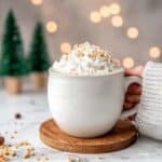 - Add Toppings: Generously top your latte with whipped cream, then sprinkle toffee bits on top for an added crunch and burst of sweetness. Serve immediately and enjoy.