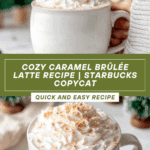 This Caramel Brûlée Latte replicates the rich, creamy Starbucks favorite right at home. Combining steamed milk infused with caramel syrup and strong espresso, it is topped with whipped cream and crunchy toffee bits for the perfect sweet, indulgent coffee treat.