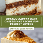This Carrot Cake Cheesecake combines the warm spices and moist texture of classic carrot cake with the creamy richness of cheesecake. It’s a delightful dessert that’s perfect for celebrations or anytime you want an indulgent treat.