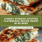 These Cheesy Spinach Stuffed Flatbreads are a delicious and satisfying recipe featuring soft, homemade flatbread dough filled with a savory mixture of fresh spinach and three types of cheese. Perfect as a snack, appetizer, or light meal, these flatbreads are pan-cooked until golden and crispy, delivering a cheesy, flavorful bite every time.
