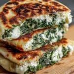 These Cheesy Spinach Stuffed Flatbreads are a delicious and satisfying recipe featuring soft, homemade flatbread dough filled with a savory mixture of fresh spinach and three types of cheese. Perfect as a snack, appetizer, or light meal, these flatbreads are pan-cooked until golden and crispy, delivering a cheesy, flavorful bite every time.