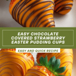Delight in these festive Chocolate Covered Strawberry Easter Treats featuring juicy strawberries dipped in orange candy melts, drizzled with extra candy coating, and served atop creamy chocolate pudding layered with crushed Oreos. Perfect for spring celebrations and Easter parties, these individual pudding cups combine fruity freshness and rich chocolate flavors in a fun and elegant presentation.