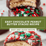 Delicious and easy-to-make Chocolate Peanut Butter Stacks combine buttery crackers with a creamy peanut butter and marshmallow filling, all dipped in rich melted chocolate and finished with festive sprinkles. Perfect for holiday gatherings or sweet snacking.
