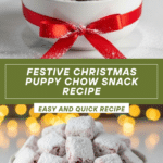 This Christmas Puppy Chow recipe is a festive twist on the classic snack mix, combining crispy Chex cereal with a rich chocolate-peanut butter coating and a sparkling sugar dusting. It’s a delightful treat perfect for holiday gatherings and sharing with loved ones.