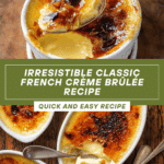 Classic French Crème Brûlée is a rich and creamy custard dessert topped with a crisp caramelized sugar crust. This elegant recipe uses vanilla-infused heavy cream, egg yolks, and sugar baked in a water bath for a smooth, delicate texture. The brûlée topping is caramelized with a blow torch to create the signature crackly surface.
