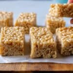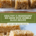 A simple and healthy no-bake rice bubble slice made with just three ingredients: puffed rice, brown rice syrup, and butter. This clean eating treat is quick to prepare, requiring only 5 minutes of active time, and is perfect for snacks or lunchboxes.