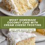- Serve and Enjoy: Slice and serve this moist, flavorful coconut cake. Enjoy the perfect balance of creamy frosting and coconut texture!
