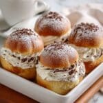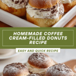 These coffee cream-filled donuts are a delightful treat combining soft, fluffy pastry with a rich, creamy coffee filling. Perfect for breakfast or an afternoon pick-me-up, they bring the comforting flavors of a café right to your home kitchen.