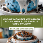 These Cookie Monster Cinnamon Rolls are a fun and delicious twist on classic cinnamon rolls, featuring a vibrant blue swirl and a cookie-filled cinnamon sugar center. Topped with cream cheese icing and extra cookie crumbs, they make an irresistible treat for any occasion.