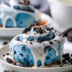 Indulge in these delightful Cookie Monster Cinnamon Rolls featuring a vibrant blue swirl, a gooey cinnamon-sugar cookie filling, and a luscious cream cheese glaze. Perfectly soft and fluffy, these rolls combine classic cinnamon roll flavors with crushed chocolate sandwich cookies and chocolate chips, making them an irresistible treat for any occasion.