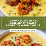 This creamy lobster and scallop chowder is a comforting seafood delight perfect for chilly evenings. Loaded with tender lobster, succulent scallops, and sweet corn, it’s a warm bowl of coastal flavors that’s easy to prepare and sure to impress.
