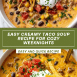 This creamy taco soup is a comforting and flavorful meal perfect for cozy weeknight dinners. Packed with hearty ground beef, beans, and a rich creamy broth, it’s easy to make and sure to please the whole family.