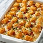 This Cracked Out Chicken Tater Tot Casserole is a comforting, flavorful dish perfect for family dinners or casual gatherings. It combines tender chicken, creamy cheese sauce, crispy bacon, and golden tater tots for a satisfying meal everyone will love.