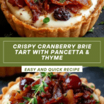 This Cranberry Brie Tart with Pancetta and Fresh Thyme is a perfect blend of savory and sweet flavors wrapped in flaky puff pastry. It’s an elegant yet easy appetizer or light meal that impresses with minimal effort. Fresh cranberries add a bright tang, while crispy pancetta brings a delightful crunch.