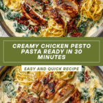 This creamy chicken pesto pasta is a quick and satisfying meal perfect for busy weeknights. Tender chicken, vibrant pesto, and sun-dried tomatoes come together in a luscious sauce that clings to perfectly cooked pasta. Ready in just 30 minutes, it’s a flavorful dish the whole family will love.