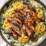 This Creamy Chicken Pesto Pasta combines tender chicken breasts with a luscious pesto cream sauce, sun-dried tomatoes, and fresh baby spinach for a flavorful and satisfying weeknight meal. Ready in just 30 minutes, it’s perfect for a comforting dinner that feels gourmet yet comes together quickly.