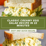 This classic Egg Salad recipe features creamy, flavorful chopped eggs mixed with light mayonnaise, celery, dill, and a blend of seasonings. Perfect for sandwiches or as a protein-packed snack, this easy-to-make salad is ready in just 22 minutes and serves four.