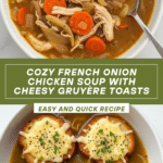 Keywords: French Onion Soup, Chicken Soup, Comfort Food, Caramelized Onions, Gruyère Toast, Chicken and Onion Soup, Cozy Winter Soup, Classic Soup Recipe