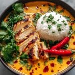 This Creamy Thai Red Curry Chicken Bowl is the perfect blend of rich, spicy, and fresh flavors. Ready in just 30 minutes, it’s an ideal comfort meal for busy weeknights. The tender chicken thighs simmered in fragrant coconut curry sauce over jasmine rice make every bite a delight.