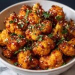This Crispy Air Fryer Sesame Cauliflower recipe offers a deliciously crunchy and flavorful vegetable dish, perfect as a snack or side. Tossed in a savory marinade of sesame oil, soy sauce, and garlic powder, then air fried to golden perfection, these cauliflower florets are a healthy and satisfying way to enjoy a veggie-packed treat with minimal oil.