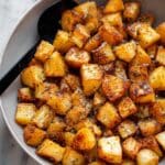 These Crispy Breakfast Potatoes are perfectly roasted russet potatoes seasoned with a blend of garlic, onion, paprika, and herbs for a flavorful and crunchy side dish. Oven-roasted at high heat then broiled for extra crispiness, they make a versatile accompaniment to breakfast meals or a tasty snack on their own.