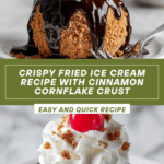 Keywords: crispy fried ice cream, cornflake crust ice cream, crunchy ice cream dessert, vanilla ice cream recipe, toasted cornflakes coating