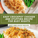 This Crockpot Chicken and Stuffing recipe is a comforting and easy meal perfect for busy days. Tender chicken breasts cook slowly with creamy soup and a crispy stuffing topping, making a hearty dish everyone will love.