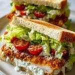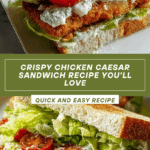 This Crunchy Chicken Caesar Sandwich combines crispy, golden chicken with fresh romaine and creamy Caesar dressing, all packed between toasted sourdough bread. It’s a satisfying meal perfect for lunch or a quick dinner. The added Parmesan in the breadcrumb coating gives it an extra burst of flavor.