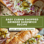 The Cuban Chopped Grinder Sandwich is a flavorful, satisfying meal featuring layers of savory meats, Swiss cheese, and tangy pickles, all nestled inside warm Cuban bread. Served with an optional fresh chopped salad, this sandwich makes a perfect lunch or casual dinner that’s easy to prepare and delicious to eat.