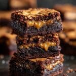 Decadent Biscoff Brownies combine rich caramel-like Biscoff cookie butter with melty chocolate pockets and a perfectly fudgy texture. These indulgent brownies feature a unique surprise layer of cookie butter in the center, topped with crushed Biscoff cookies and a drizzle of extra cookie butter for added flavor and crunch.