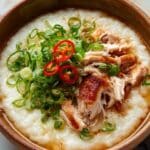 This comforting Chicken Congee recipe offers a warm, hearty meal prepared in just 45 minutes. Tender shredded chicken mingles with soft, creamy rice porridge infused with ginger, garlic, and a hint of white pepper. Garnished with scallions and optional soft-boiled eggs, this classic Asian dish is perfect for breakfast, lunch, or a soothing dinner.