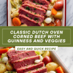 This Dutch Oven Corned Beef recipe features a tender, flavorful corned beef brisket slow-cooked with Guinness beer, aromatic vegetables, and seasonings. The beef is simmered to perfection in a Dutch oven, then served with hearty carrots, red potatoes, and cabbage for a classic, comforting meal perfect for family gatherings or St. Patrick’s Day celebrations.