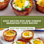 These Easy Bacon Egg and Cheese Breakfast Cups are a delicious, portable breakfast option featuring crispy bacon wrapped around cheesy baked eggs. Perfect for busy mornings or brunch, they combine savory flavors with a satisfying texture, all baked in a muffin tin for convenience.