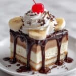 This Banana Ice Cream Cake with Hot Fudge is a delightful frozen dessert that combines creamy banana ice cream, a buttery vanilla wafer crust, fresh banana slices, and a rich homemade hot fudge topping. Perfect for celebrations or casual gatherings, this make-ahead dessert offers a nostalgic, playful experience with contrasting textures and temperatures—crisp crust, smooth ice cream, sweet bananas, and warm chocolate fudge poured over each slice.