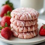 Keywords: Strawberry cookies, cake mix cookies, Cool Whip cookies, soft cookies, powdered sugar cookies, easy dessert, crinkle cookies, beginner baking