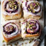 - Finish and Garnish: Brush the warm buns generously with the rose glaze and sprinkle with edible dried rose petals and chopped pistachios for a beautiful and flavorful finish.