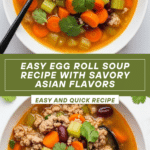 Egg Roll Soup brings the savory flavors of a classic egg roll into a warm, comforting bowl of soup. Filled with tender cabbage, carrots, and seasoned ground pork, this dish is both hearty and satisfying. Its rich broth, enhanced with hoisin and soy sauce, makes each spoonful a delicious treat perfect for any meal.